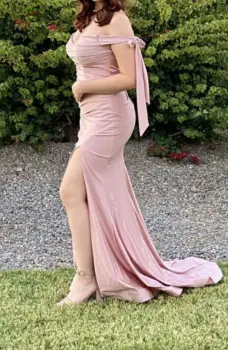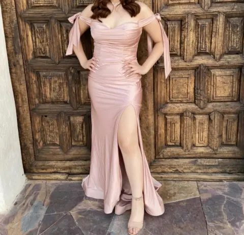 Vestido para fiesta precioso. Talla (L) color rosa claro tela fina satinada en excelentes condiciones tiene solo una puesta.