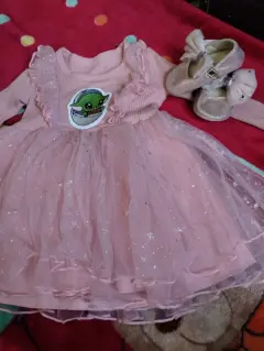 Vestido para nena talla 18 meses. Color rosa con imagen de grogu.
