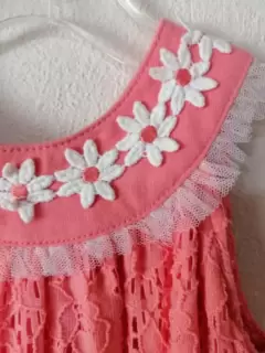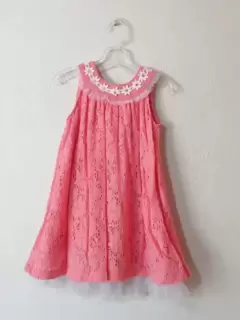 Hermoso vestido para niña color salmón, ideal para la temporada de calor.Está en excelente estado solo el desgaste normal por poco uso.