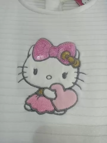 Vestido para niña marca Hello Kitty - kids. Hermoso vestido talla 12, súper elegante en color ivory. La tela es de algodón pero un poquito gruesa, se puede usar de manera más formal; la Kitty trae aplicación de lentejuela cocidas, por lo que es difícil se caigan :)