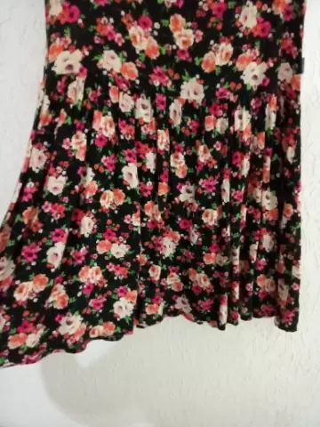 Vestido talla 10, la tela es fresca y ligera; tiene una caída muy linda, cómo tableado. El logo está bordado :)