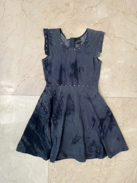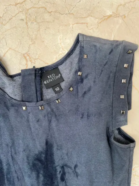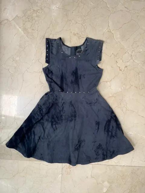 Hermoso vestido Ted Kenton Para niñas talla 10 años azul marino Tiene en las mangas , cuello y cintura estoperoles plateados