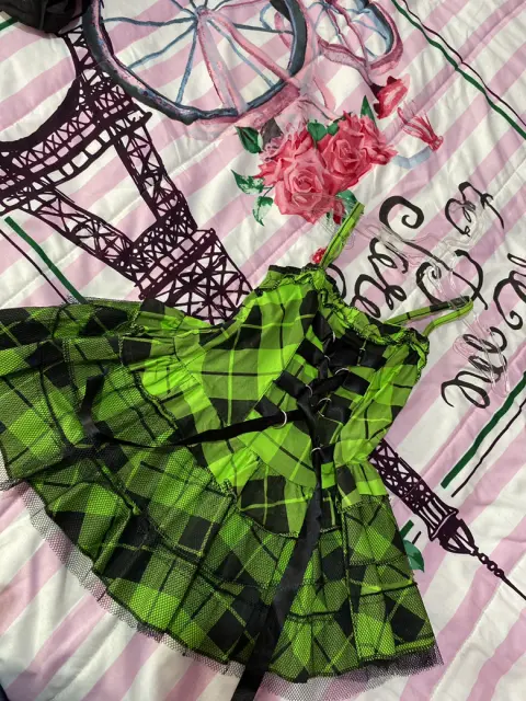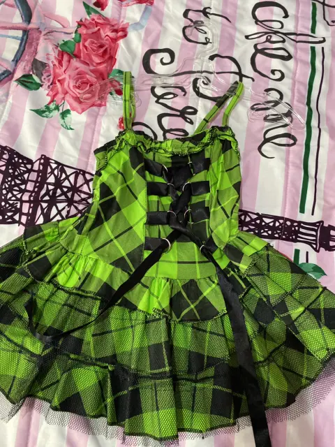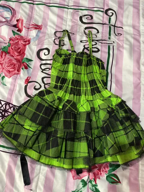 Vestido para niña tipo hallowen. Hermoso vestido color verde para niña talla 3/ 4 años, contiene una cinta en la parte trasera para ajustarse, de tirantes y con una pequeña crinolina en la falda.