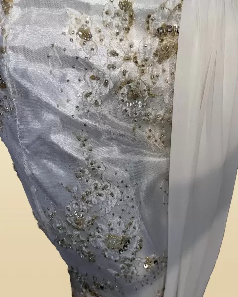 Vestido para novia XL con detalles en pedrería, usado una vez y mandado a la tintorería.