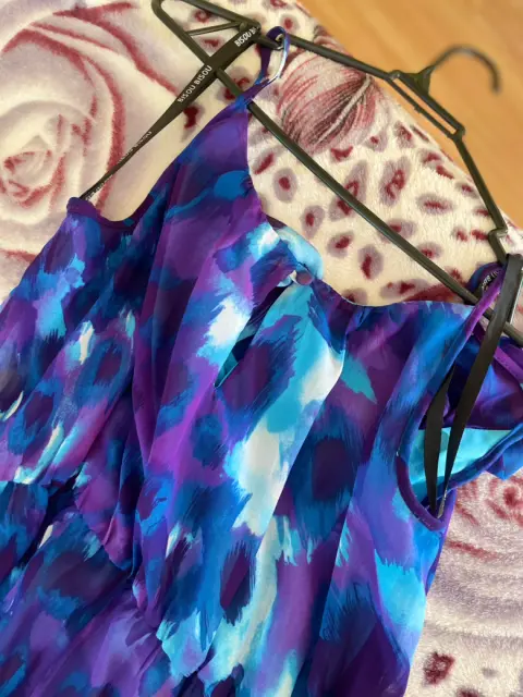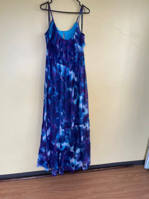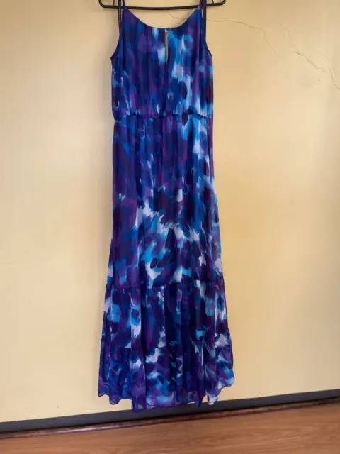 Vestido largo de tonos padrísimos, forrado hasta abajo. Llega al tobillo . No trae el cinturón .