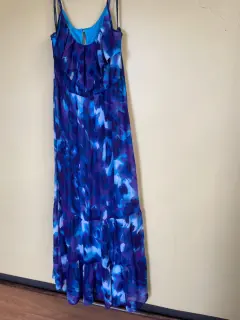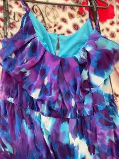 Vestido para playa o jardín. Vestido largo de tonos padrísimos, forrado hasta abajo. Llega al tobillo . No trae el cinturón .