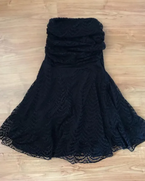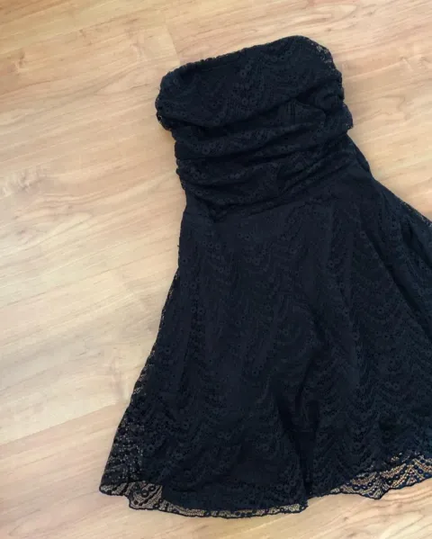 Vestido Perforado Encaje- TOPSHOP. Adquirido en Canadá. Color negro, de tipo encaje con perforado (se aprecia en fotos 2 y 5) tiene forro muy suave color negro, es un vestido strapless. Tiene banda tipo silicona “adherible” que se fija en la piel para que no se te baje y estés cómoda. Lo puedes usar casual o formal dependiendo de tus accesorios. Marca TOPSHOP puesto 1 vez un ratito. Talla M. MEDIDAS: largo 73cm- considera medir en el borde donde comienza el busto, axila a axila 39cm y estira a 46cm (tiene elástico), cintura 36cm y estira a 41cm❤️ EL MEJOR PRECIO ES EL PUBLICADO, pero abierta a ofertas justas y razonables. PRENDAS NUEVAS no puedo bajarme demasiado. PRENDAS C/ USO quizas podamos negociar (aunque tengo pocas) Ten x seguro q conmigo te estás llevando ALGO BIEN (ni ropa de paca, ni cosas para la basura) Muchas Gracias ☺️