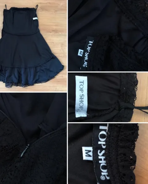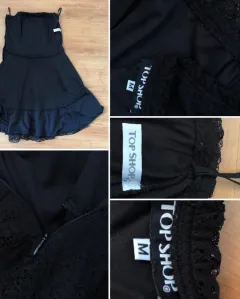 Adquirido en Canadá. Color negro, de tipo encaje con perforado (se aprecia en fotos 2 y 5) tiene forro muy suave color negro, es un vestido strapless. Tiene banda tipo silicona “adherible” que se fija en la piel para que no se te baje y estés cómoda. Lo puedes usar casual o formal dependiendo de tus accesorios. Marca TOPSHOP puesto 1 vez un ratito. Talla M. MEDIDAS: largo 73cm- considera medir en el borde donde comienza el busto, axila a axila 39cm y estira a 46cm (tiene elástico), cintura 36cm y estira a 41cm❤️ EL MEJOR PRECIO ES EL PUBLICADO, pero abierta a ofertas justas y razonables. PRENDAS NUEVAS no puedo bajarme demasiado. PRENDAS C/ USO quizas podamos negociar (aunque tengo pocas) Ten x seguro q conmigo te estás llevando ALGO BIEN (ni ropa de paca, ni cosas para la basura) Muchas Gracias ☺️