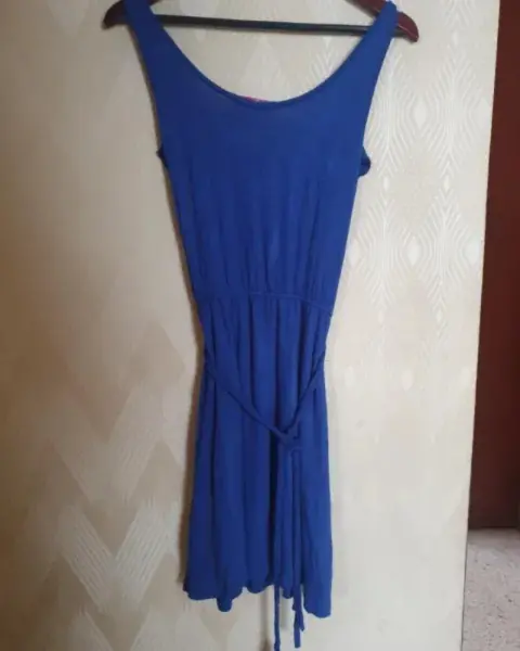 Vestido playero. Vestido para playa, color azul rey, de tirantes. Con trenza lateral como decoración