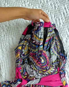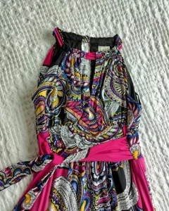 Vestido playero de cuello. Este vestido tiene escote en el cuello, se ve como una gotaSe sostiene del cuelloMarca la cintura con el cinturon de la misma tela (en la foto se ve)Es vestido largo