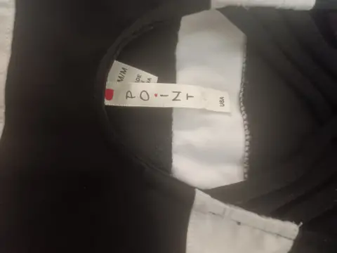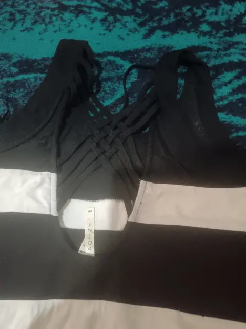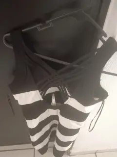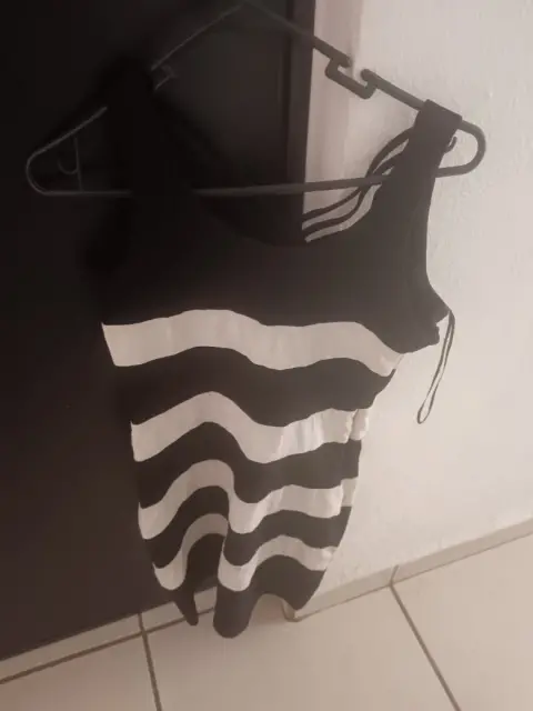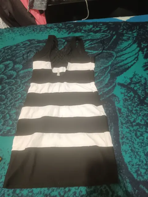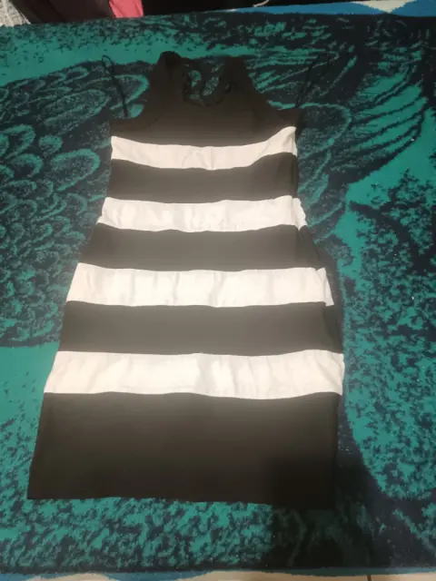 Vestido point a rayas, blanco y negro, talla M. Espalda cruzada, strech.