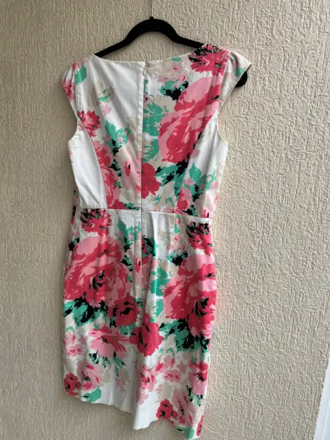 Vestido recto flores grandes, cuello cuadrado con flores rosas y azul, en base color crema estiliza mucho , medidas largo 91 cms, ancho 76 cms, busto 88 cms Mara Ann Taylor , pero sin etiqueta