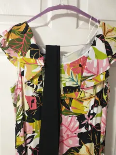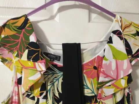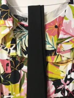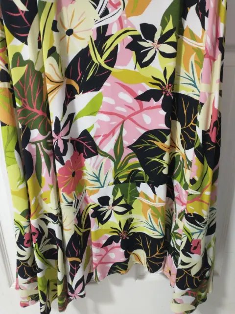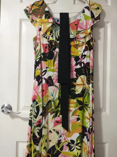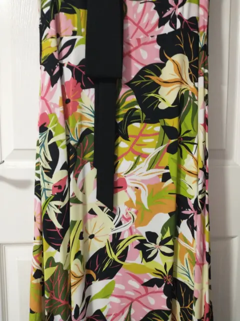 Vestido primaveral largo marca Ivonne, talla 12, con un cinto negro que va a la cintura, es ajustado hasta la cintura y amplio hacia abajo.