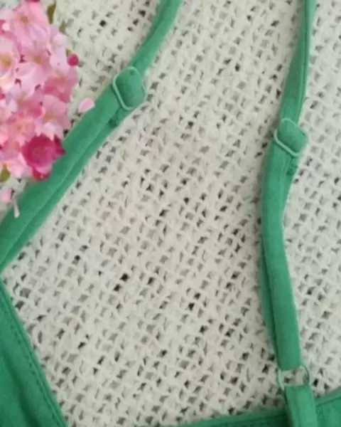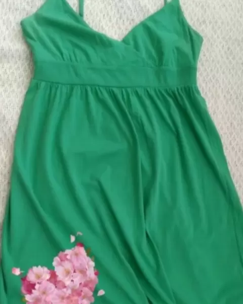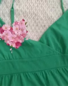 Vestido primaveral verde. Vestido de algodón a la rodilla, color verde menta. Escote cruzado y tirantes ajustables. Tiene un detalle en la parte de atrás (ver foto)