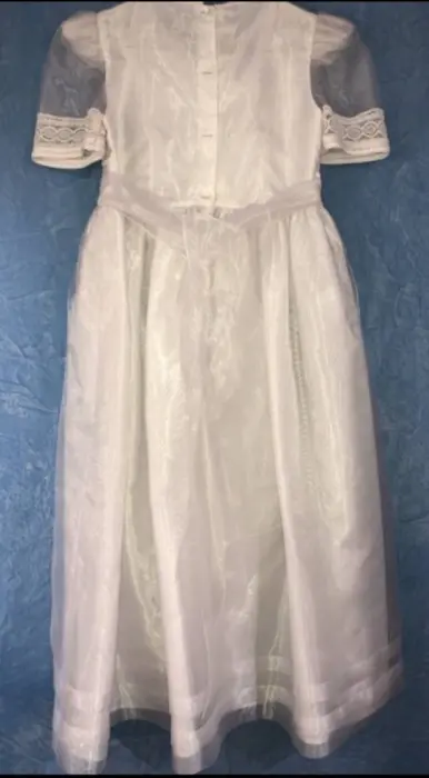 Vestido blanco para primera comunión talla 10, solo usado en misa, sin detalles, con faldilla de tul integrada, falda de gasa con forro, queda muy bonito. En la cintura hermoso detalle de listón con broche para quitarse y ponerse