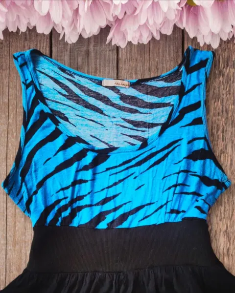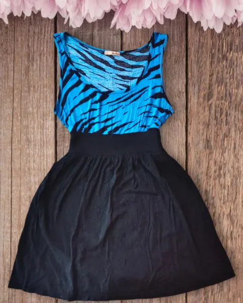 VESTIDO PRINT ZEBRA AZUL. En buen estadoLa parte de arriba estira La falda viene amplioTalla unitalla(M/G/XL)Transparenta poco la parte de arriba La falda viene grueso, la parte de arriba delgado Sin Detalle Últimas imágenes muestran las medidas y como se vería puesto (no es el mismo vestido) Puedo armar paquete con otra(s) prenda(s) que sea de tu agrado de mi closet Si tienes alguna duda por favor pregunta!