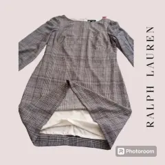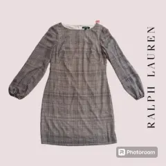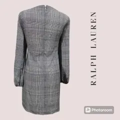 Vestido Ralph Lauren. Vestido manga larga estampado a cuadros negro/blanco, Ralph Laurent t 6, forro completo en cuerpo, elástico en puños, cuello oval, cierre trasero y broche. 39cm hombro a hombro 46cm axila a axila 84cm cintura 98cm cadera 90cm largo. Material 100% poliéster. Nuevo con etiqueta de departamental americana.
