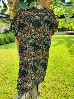 Lindo vestido en tonos otoñales, arriba de la rodilla , cuello ojal