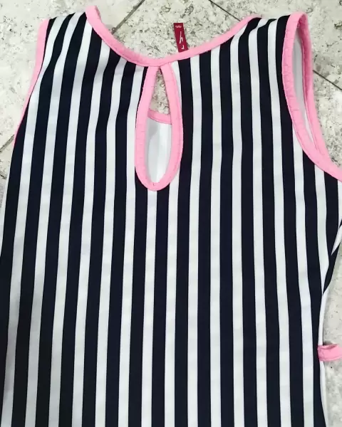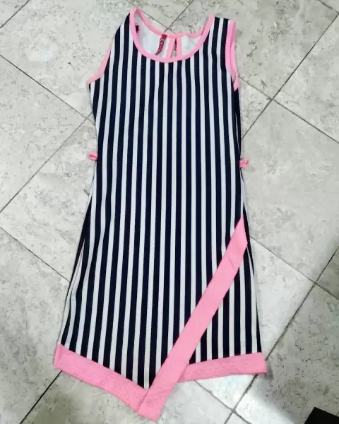 Vestido rayado. Vestido sin mangas, de corte asimétrico y entallado, la tela estira un poco lo que permite que se amolde bien,