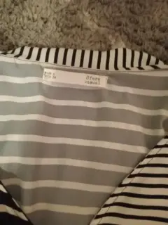 Hermoso vestido con rayas disparejas color blanco con negro. De tirantes. Los tirantes no son ajustables. Tienen cinta en cintura para ajustar. La tela es delgadita y ligerita. Medidas ax a ax 41 cm, cintura 37 cm, largo 123 cm.