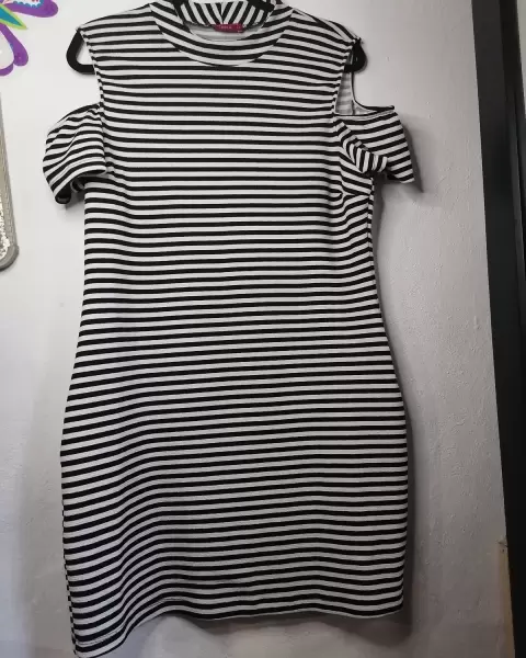 Vestido rayas hombros descubiertos. Hermoso y fresco vestido, corto. Talla 36. Tipo strech. Hombros descubiertos. Juvenil💚 Sin detalles, te va a encantar!!* Compra más artículos de mi perfil y mejoro el precio* 💋Elige en todo mi clóset y combina lo que quieras 😎Si es tu primer compra busca en la última imagen el código, ingresalo antes de pagar 😉