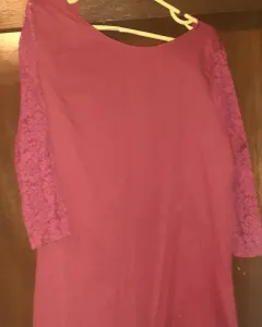 Bonito vestido rojo, a la rodilla Talla M/L Con encaje en brazos.Escote en "V", con botones en la parte de la espalda.