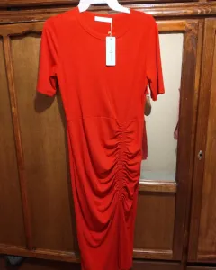 Vestido rojo. Bonito vestido de tela Rib , llegua a las rodillas , pegado manga corta
