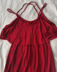 Vestido rojo con tirantes de hombros y tirantes en la espalda, es un vestido de Licra muy bonito y fresco