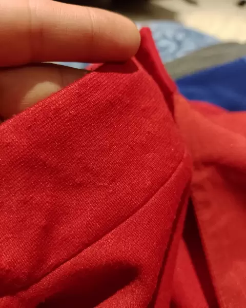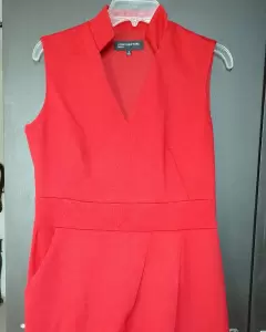Color rojo, forma muy bien la cintura, tiene bolsa lateral, le subí la bastilla porque me quedaba muy largo pero se puede modificar ya que tiene cinta térmica, de detalle en el cuello tiene unos jalados