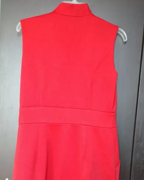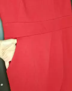 Vestido rojo. Color rojo, forma muy bien la cintura, tiene bolsa lateral, le subí la bastilla porque me quedaba muy largo pero se puede modificar ya que tiene cinta térmica, de detalle en el cuello tiene unos jalados