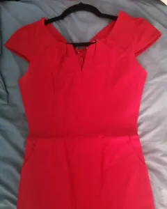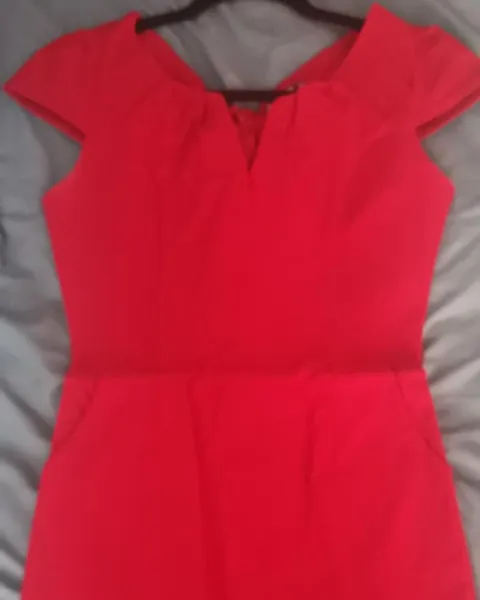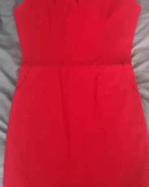 Vestido rojo. El vestido es hermoso, tiene bolsas laterales y queda a media pierna. Puesto una sola vez