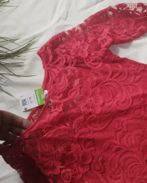Vestido rojo. Vestido rojo de encaje con forro, en color rojo, americano