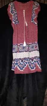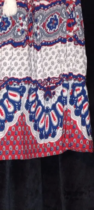 Vestido rojo. Vestido rojo con patron azul y blanco,talla L,de shein,solo se uso tres veces