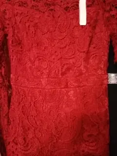 Vestido rojo. Vestido color rojo de encaje y fondo, manga larga, abajo de la rodilla, talla m