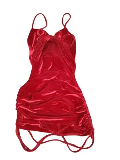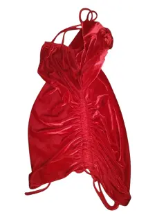 Hermoso vestido 👗 😍 color rojo terciopelo tirantes, con cordones a los lados para hacerlo corto o largo según lo quieras