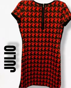 VESTIDO ROJO CON NEGRO JULIO. Hermosisimo vestido marca Julio en talla 6, que queda muy bien a M. A una talla chica le quedaría holgadito pero se ve bonito aún así. A una M le arma padrisimo el cuerpo y la tela es como de punto gruesa. De excelente calidad la tela. Te encantará