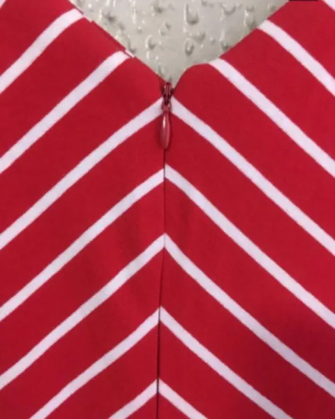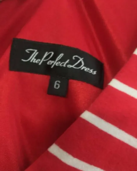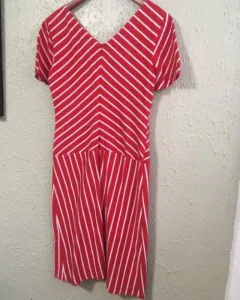 Vestido rojo con rayas blancas. Talla 6, nuevo sin etiqueta. Hombro a hombro 42 cm, axila a axila 44 cm.Pregunta disponibilidad ya que también lo tengo publicado en GoT
