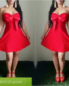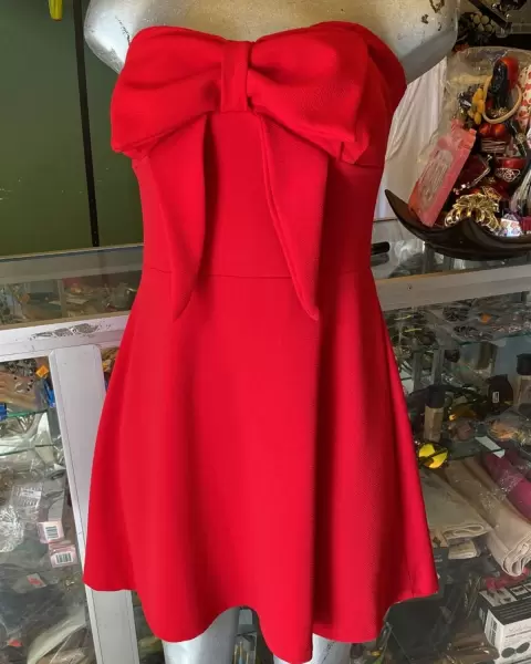 Vestido rojo corto straples. Vestido rijo, corto, estraples con moño al frente, la tela estira un poco