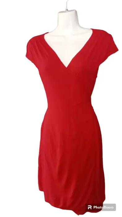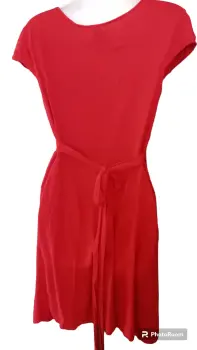 Vestido rojo de algodón marca Old Navy, fresco, se cruza por abajo, la talla es M sin embargo puede ser más pequeño si lo requieres ya que se amarra, el cuello es hermoso en V, ideal para cualquier ocasión ya sea en la.oficina o para una salida coqueta.
