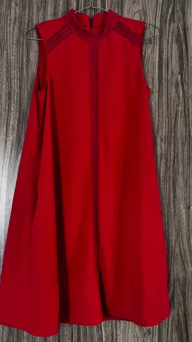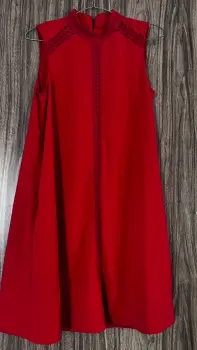 Vestido rojo en forma de campana. Vestido hermosos en forma de campana talla chica cómodo con bolsas a los lados, te queda con zapatillas o sandalias