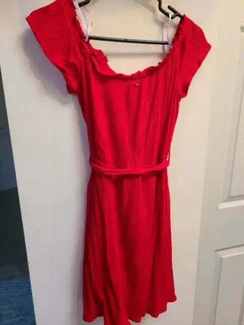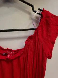 Lindo vestido rojo Guess, solo fué usado 1 vez, esta como nuevo, sin detalles, tela 100% rayón y tiene forro por lo que no se transparenta nada