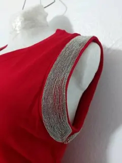 NUEVO sin etiqueta.Súper hermoso y ELEGANTE.Talla L, pero viene reducido, por eso puse que es M.Los detalles en los hombros lo hace único.Tela rayón, spandex y naylon (con strech).De axila a axila: 46 cmEl terminado de atrás es recto y de adelante asimétrico.