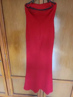 Vestido largo formal color rojo talla mediana ,es straples muy cómodo
