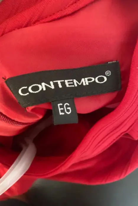 Vestido rojo tipo costal, manga 3/4, EG, material poliéster y elastano, con forro, nuevo con etiqueta.