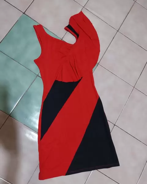 Vestido rojo y negro. Vestido tela muy comoda y suave, esta nuevo, tiene el detalle de la manga coqueton