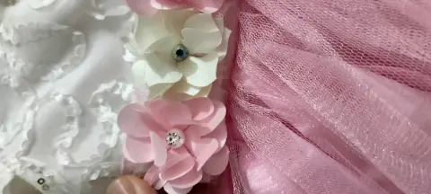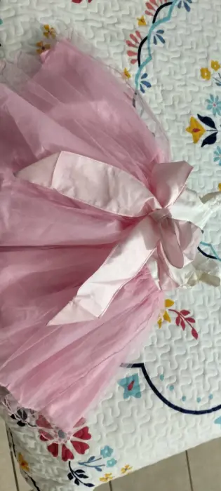 Vestido rosa bebe 🩷. Es un vestidito de fiesta esponjadito pero muy ligero, se ve divino.Solo fue puesto una vez. Talla un añito.