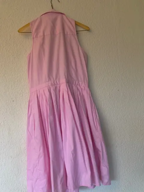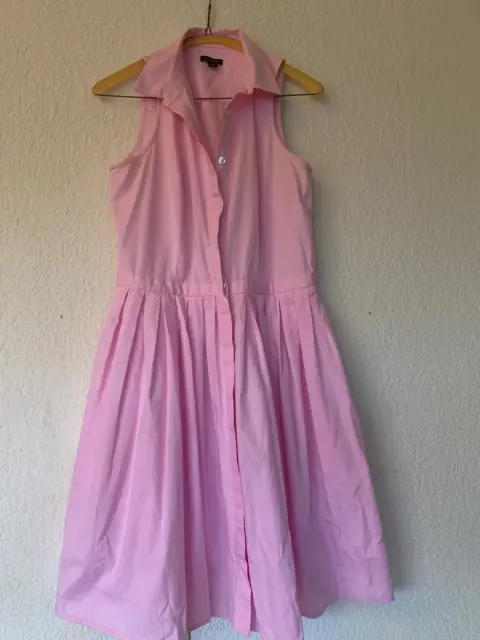 Vestido de verano rosa, sin mangas, botones al frente , falda tableada, y cuello camisero . Marca es Ann Taylor, talla 4