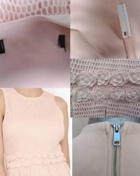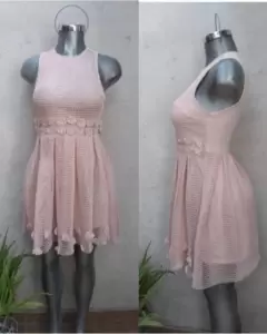 Hermoso vestido de encaje tipo red color rosa con flores con perlas mismo que el de fotos de referencia no cuenta con etiquetas de marca y talla pero da sin problems talla ch-m con forro estira levemente MEDIDAS ziza a ziza 42cm cintura 35cm largo del hombro hacia abajo 87cm