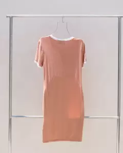 Vestido corto color rosa palo con manga corta. Talla L en excelentes condiciones.