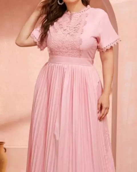 Hermoso vestido Shein rosa pastel con detalle de encaje en el pecho mide 115cm de busto llega a 100cm de cintura es tela poliester queda muy bonito, esta nuevo entrego en su bolsa